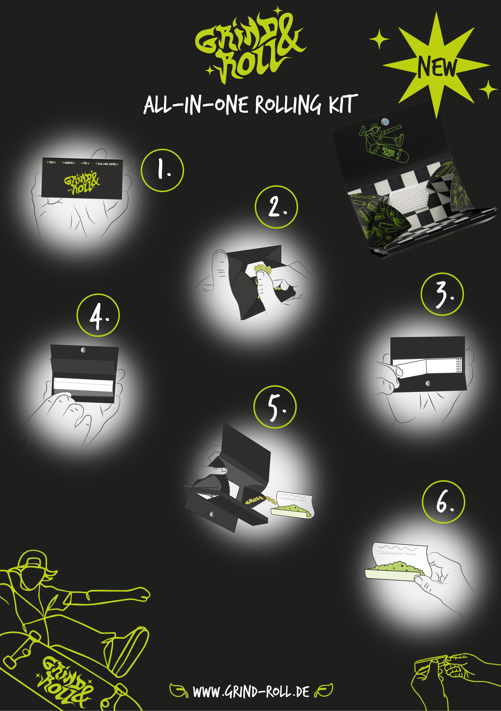 Alles verstaut in einer Magnetverschluss-Box – perfekt als tragbares Rollset und komplettes Rauchzubehör To-Go.